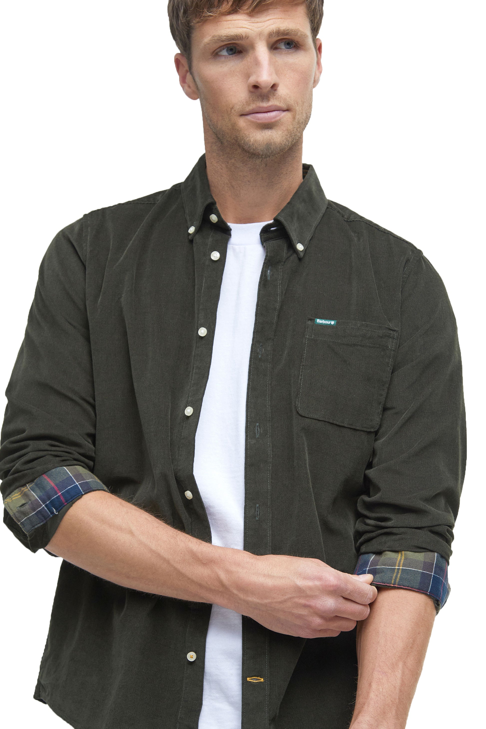 - Chest Pocket: A practical chest pocket on the left side with a subtle Barbour shield logo.
