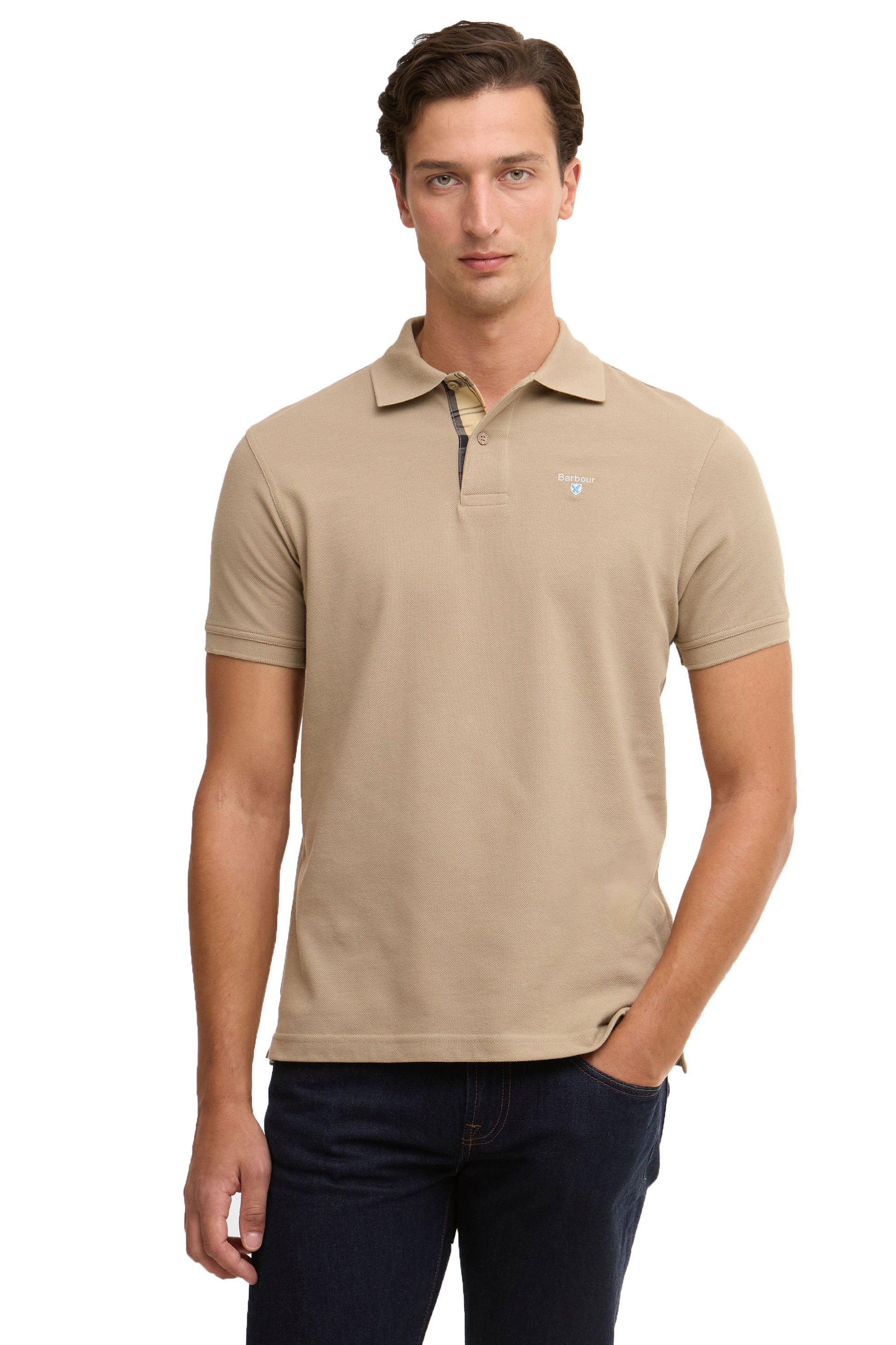 BARBOUR TARTAN PIQUE POLO SHIRT WASHED STONE