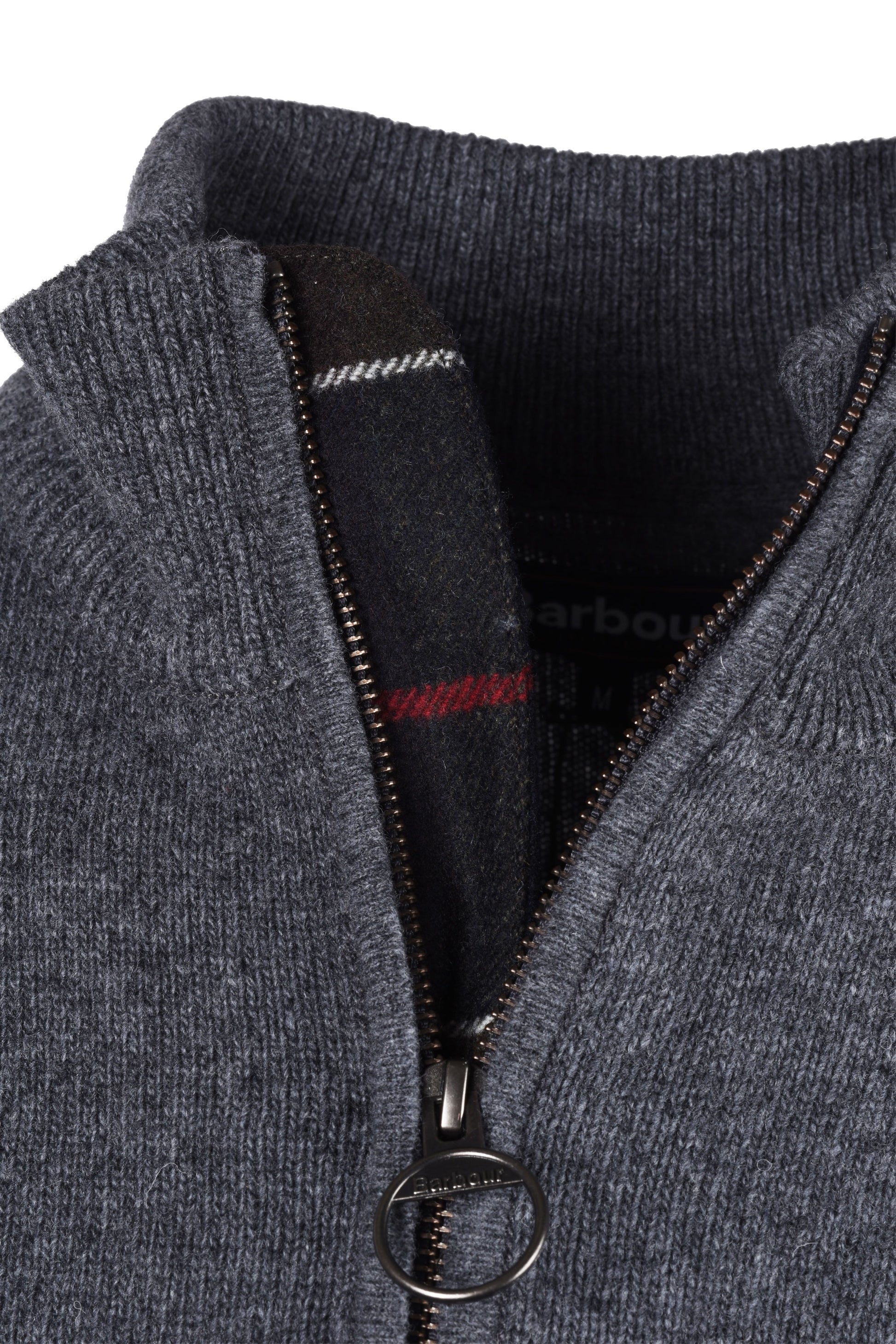 This warm sweater made from 100% Wool is ideal for putting over a shirt to layer up on those cold Autumn/Winter days. Featuring ribbed funnel neck with tartan inlay which fastens with a Barbour-branded zip. Ribbed side panels and elbow patches in Barbour’s Classic Tartan make this sweater stand out from the crowd.