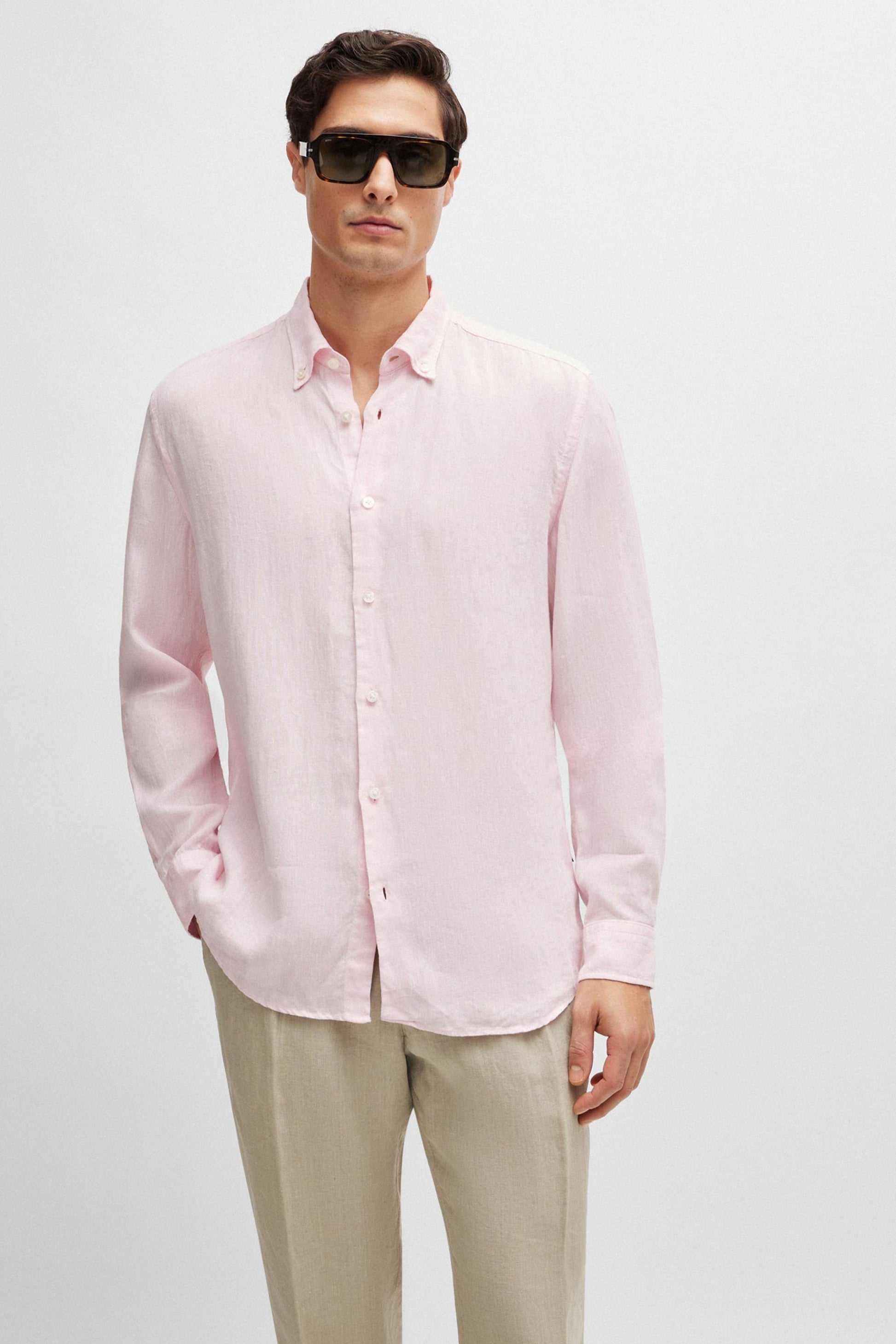 A timeless wardrobe essential, the Boss S-Liam long-sleeved shirt is crafted from pure linen cotton for a luxuriously soft and breathable feel. Cut to a regular fit, it features a button-down collar, buttoned cuffs and a curved hem for a smart yet relaxed look. This versatile piece is perfect for both formal and casual occasions, adding a touch of sophistication to any outfit.