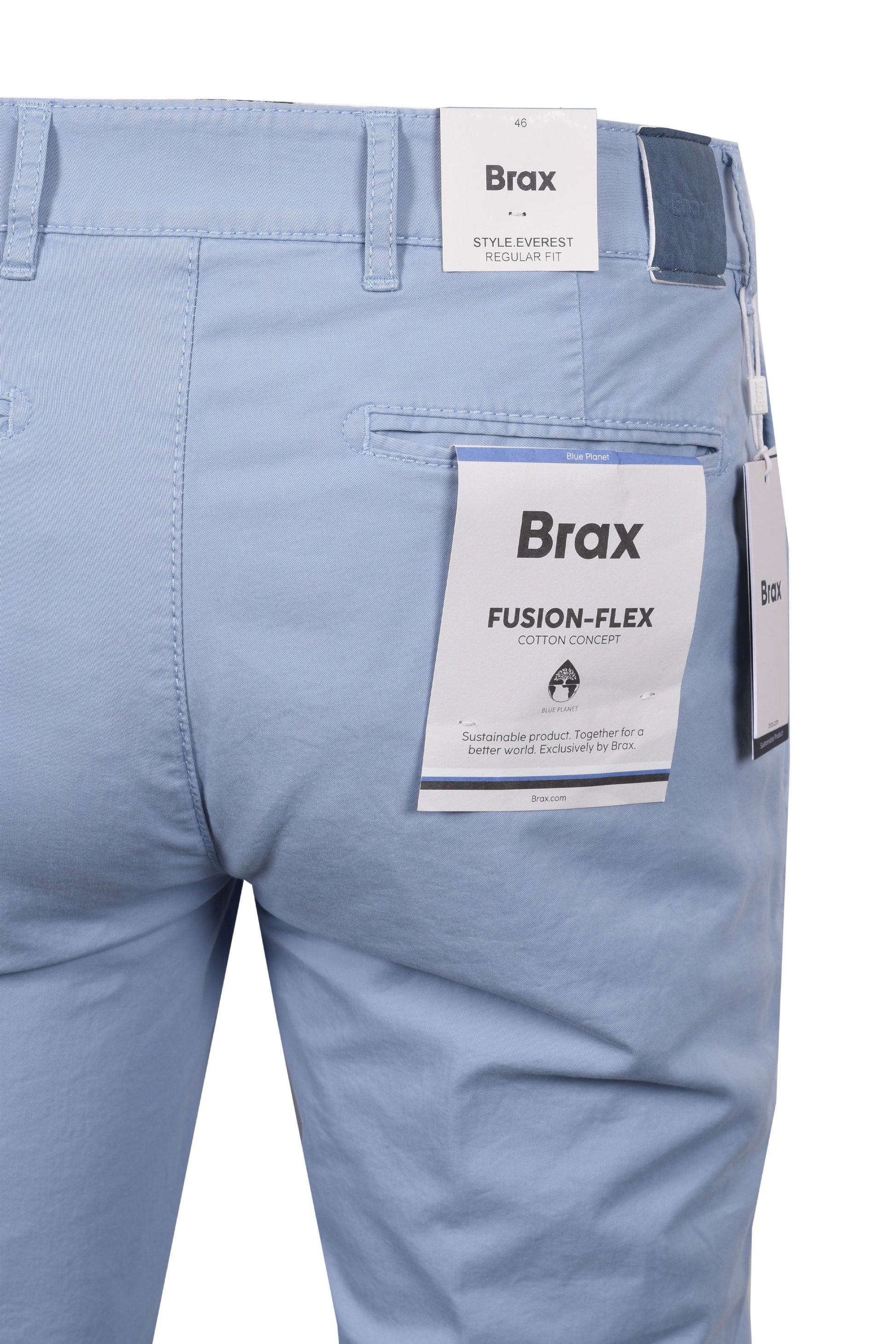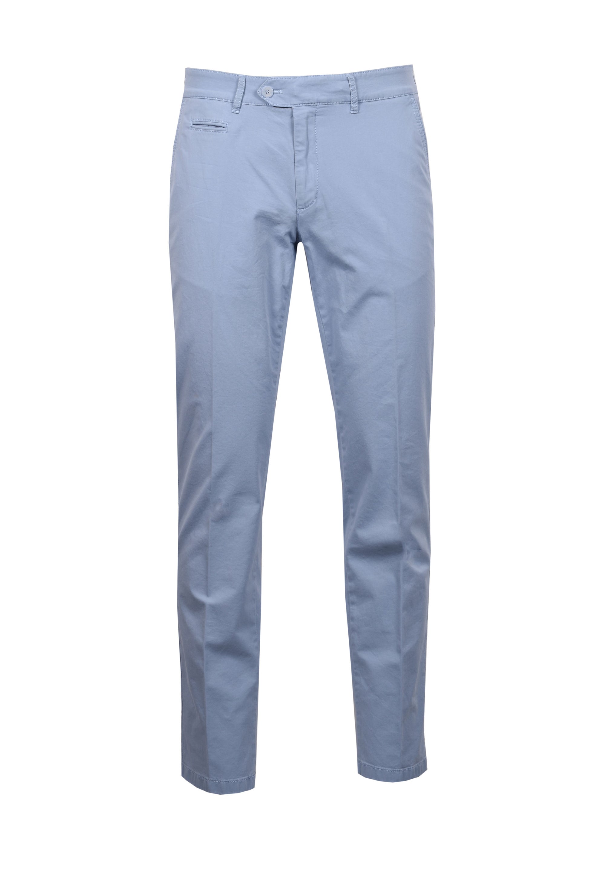 Introducing the Brax Everest Cotton Chino in Light Blue, a flexible and attractive addition to any man's collection. These regular-fit chinos provide outstanding comfort with a straight cut and regular rise, making them ideal for everyday use or dressing up.